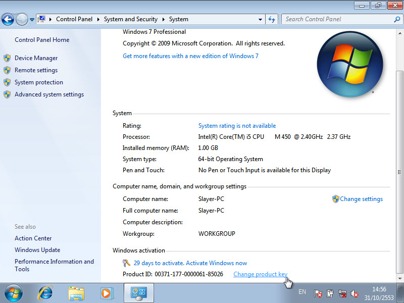 วิธีใส่ Product Key หลังจากติดตั้งเสร็จแล้ว (สำหรับคนที่ไม่ได้ใส่ Product Key ในขั้นตอนที่ 10)